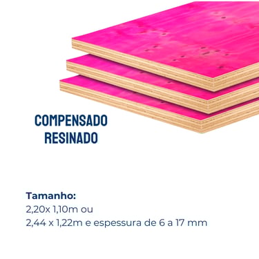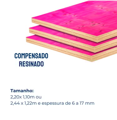 O compensado resinado, também chamado de madeirite rosa, é um material versátil e durável amplamente usado em obras, móveis e embalagens.